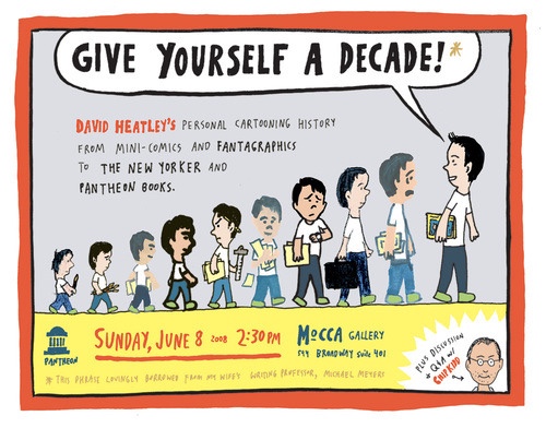 Hurgando en el blog de Austin Kleon choqué contra el consejo que da el caricaturista David Heatley: «date una década».